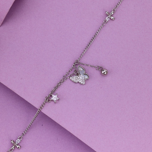 Add a touch of elegance and charm to your everyday style with our 92.5 Silver Butterfly Charm Anklet. Designed with a beautiful butterfly center piece and sparkling CZ stones, this anklet gives a graceful, feminine and youthful look. Crafted in pure 92.5 sterling silver, it is light, comfortable and perfect for...