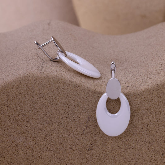 These earrings feature a smooth white ceramic oval drop paired with a polished 925 sterling silver top, creating a clean and timeless look. the soft curves and glossy finish give a refined elegance that suits both daily wear and special outings. lightweight and comfortable, they add a fresh, modern charm...