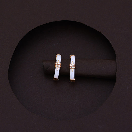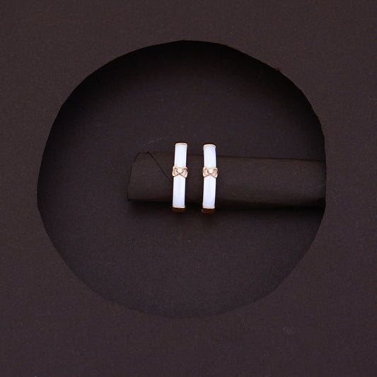 TWO MOODS, ONE DESIGN. The 2-in-1 ring and matching earrings blend minimal white ceramic with a sparkling solitaire-- symbolizing purity and confidence in every look.