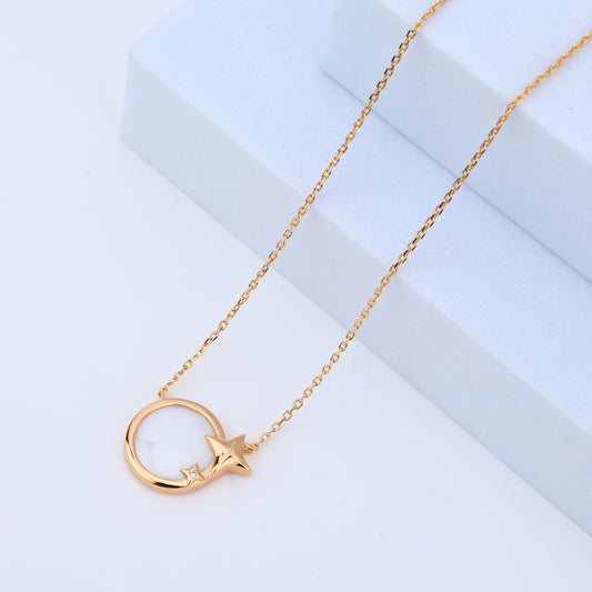Crafted in high-quality 925 sterling silver, this necklace features a stunning white ceramic circle paired with a delicate star charm accented with a sparkling stone. The smooth ceramic finish creates a soft, luxurious contrast against the polished silver frame, giving the piece a celestial and modern elegance.Perfect for daily wear,...