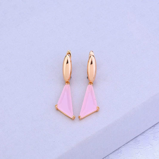 The ethereal rose set brings together elegance and edge. each piece showcases a pastel pink stone in a sleek triangular design -- minimal yet mesmerizing made for the women who loves modern luxury.