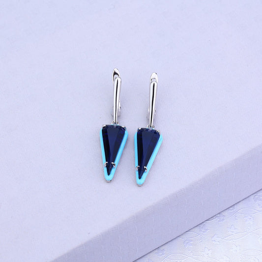 This 925 sterling silver set, featuring a deep sapphire-blue crystal framed in cry turquoise enamel, radiates a cool, confident charm. The geometric design of the pendant, earrings and ring makes it a perfect choice for women who love bold sophistication with a touch of luxury.
