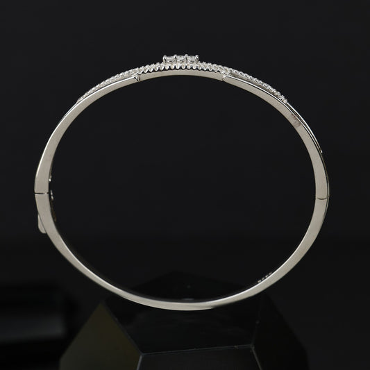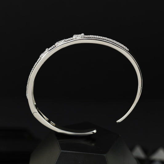This exquisite 92.5 sterling silver bracelet features a sleek, rigid bangle design adorned with sparkling stones for a refined and sophisticated look. the high-quality 92.5 silver ensures durability while maintaining a brilliant shine. this elegant piece offers the perfect balance of classic charm and modern style- ideal for daily wear...