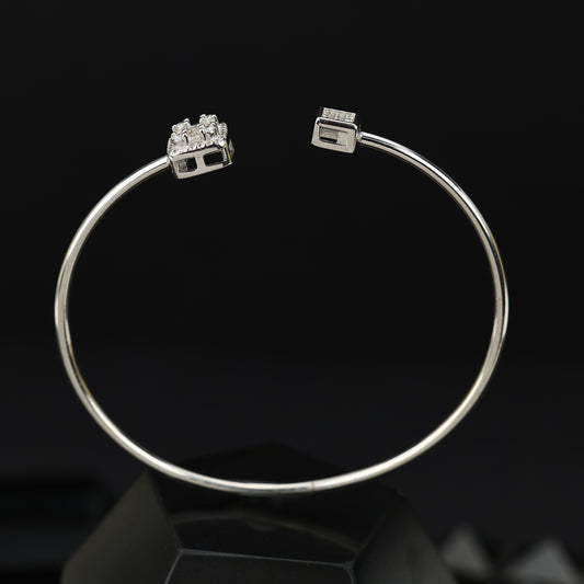 Elevate your everyday style with our 92.5 sterling silver open bangle bracelet, crafted with a modern dual-stone design. featuring a stunning baguette-cut halo stone paired with a sparkling square pave setting. this bracelet blends minimal elegance with a touch of luxury. its open-end structure gives it a light, refined and...