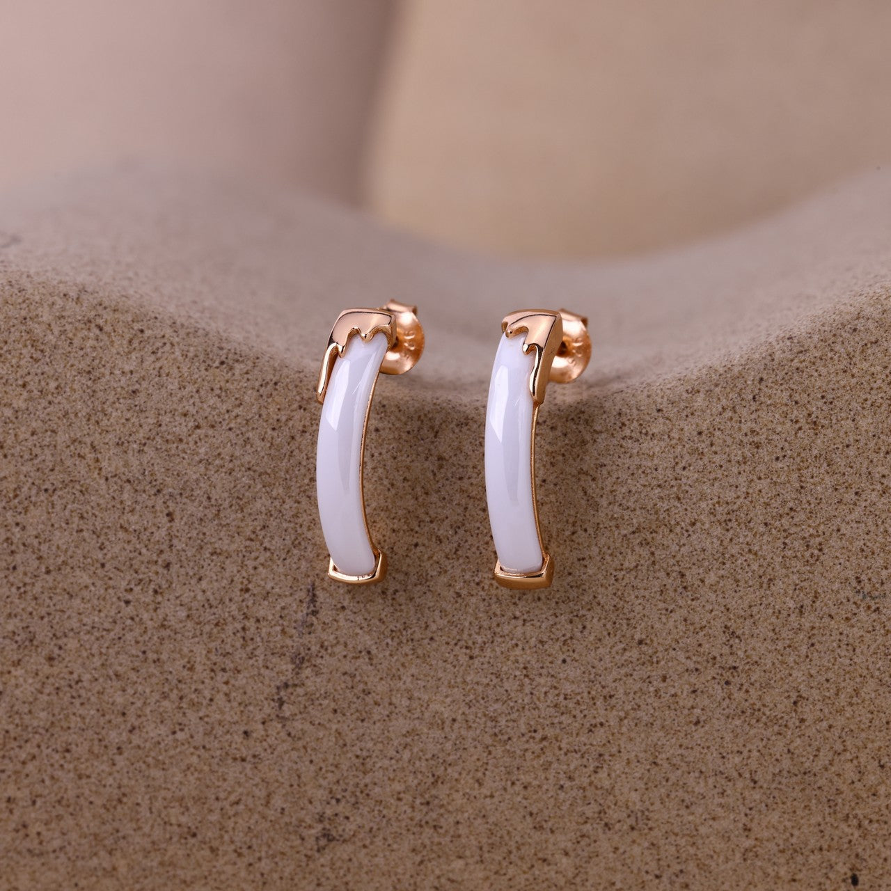 Crafted in luxurious 925 rose silver these hoop earrings feature a glossy white ceramic inlay topped with delicate patch-style detailing. the soft rose tone paired with the clean ceramic finish creates a graceful, feminine look that complements both casual and dressy styles.