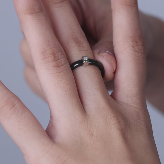 "Where simplicity meets sophistication-- the silver square accent on black ceramic adds a refined sparkle that defines everyday luxury".