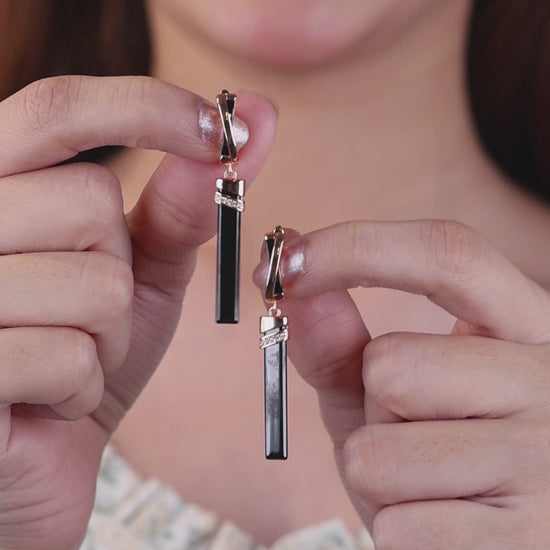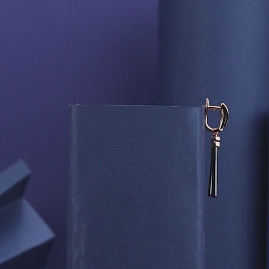 These elegant long-bar earrings are crafted in hallmarked 925 sterling silver and feature a sleek, polished black ceramic bar that gives the design a bold, modern edge. The top is highlighted with a delicate line of sparkling cubic zirconia stones, adding a subtle diamond-like shine that enhances the overall premium look.