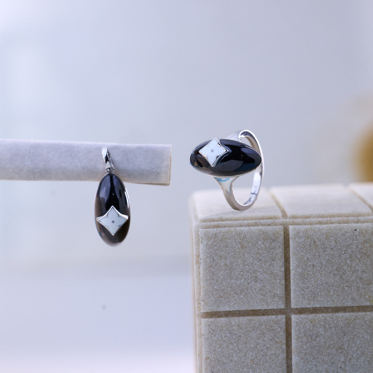 Modern sophistication redefined -- black ceramic, white stone perfect harmony.