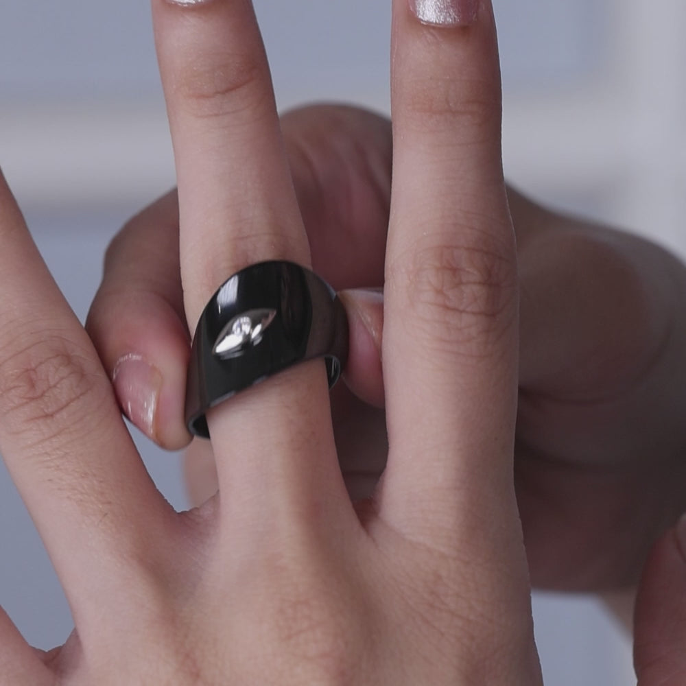"Where bold meets beautiful-- the glossy black base and tear- shaped sparkle blend luxury with minimal style.