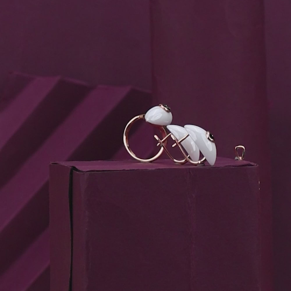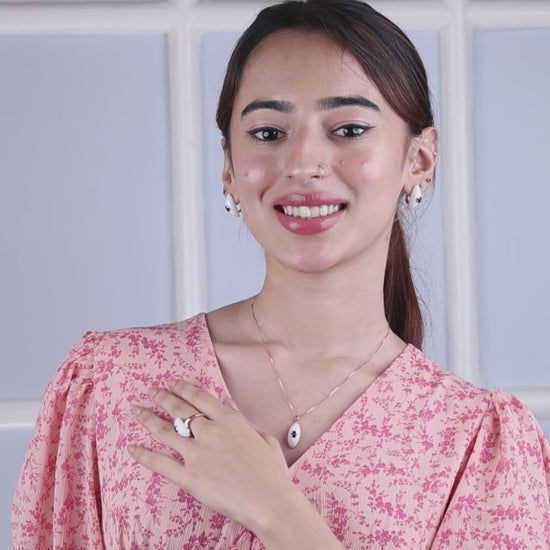 Modern art meets timeless grace-- the noir petal set in 925 silver celebrates minimal beauty. The white ceramic base and black floral detail create a sophisticated contrast that makes every glance memorable. a piece that reflects your refined taste-- just for you.