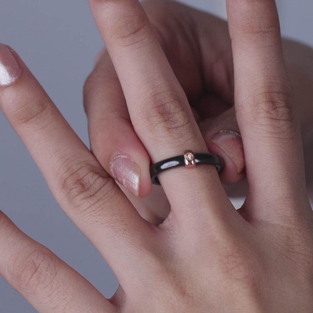 "Simple yet captivating -- the infinity style stones on deep black ceramic bring a touch of endless sophistication to your look"