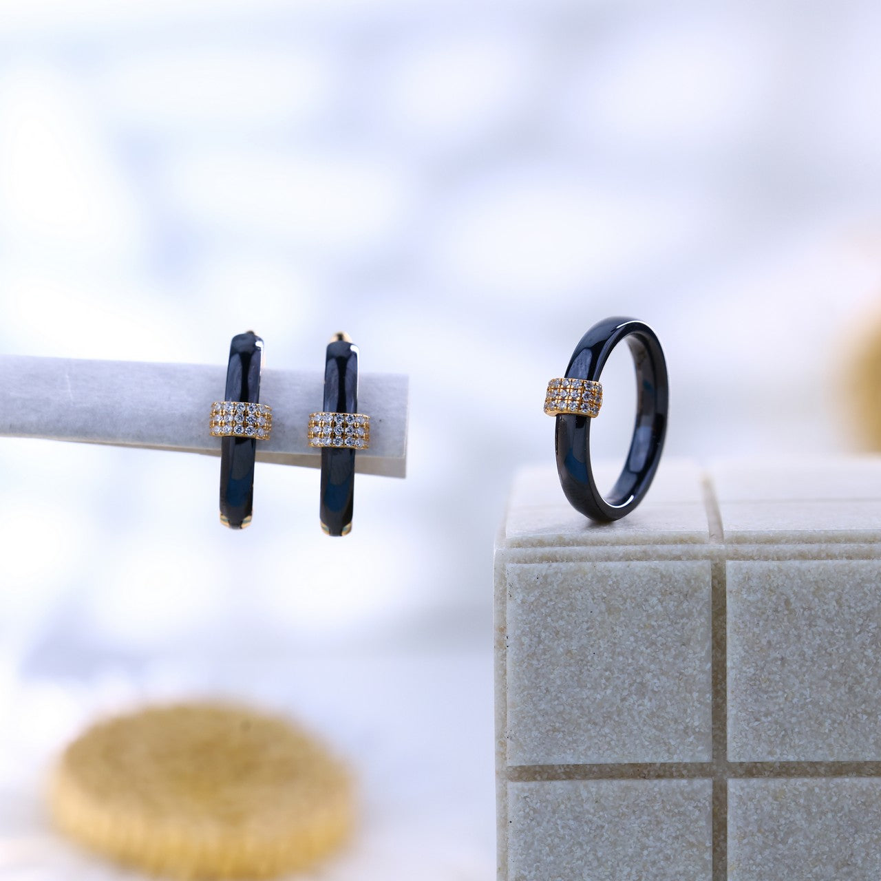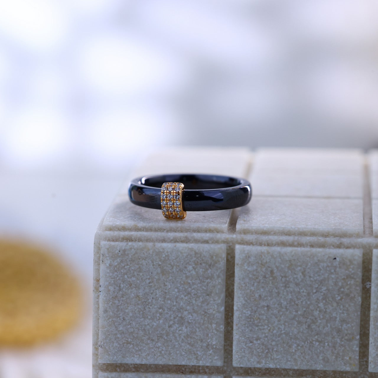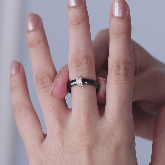 "A touch of brilliance on deep black ceramic-- this square diamond cluster design adds modern elegance to every moment".