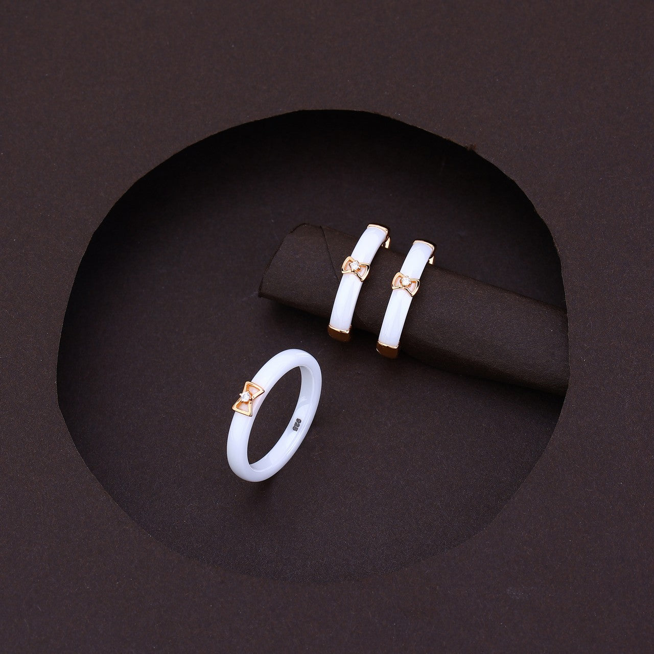 Minimal yet luxurious-- this white ceramic set adds a serene charm to your everyday and occasion looks.
