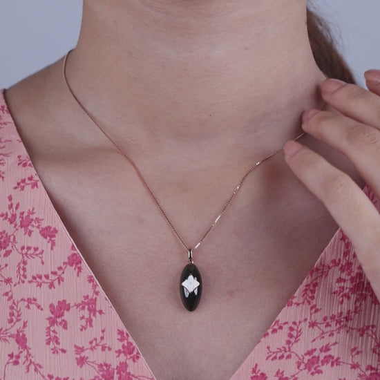 Crafted in 925 silver this pendent and ring set features sleek black ceramic with a luminous white stone at its heart -- the perfect balance of elegance and modern charm.