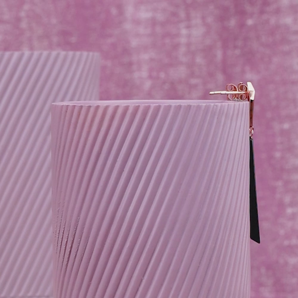 Crafted in a bold geometric silhouette, these earrings blend a folded origami-style top with a sleek black tapered drop. Their ultra-modern design makes them stand out instantly. Whether styled for a night out or a chic daytime look, these earrings add an effortless statement to your personality. Light, elegant, and designed for women who love something truly different.