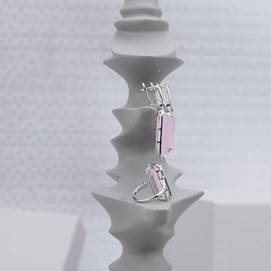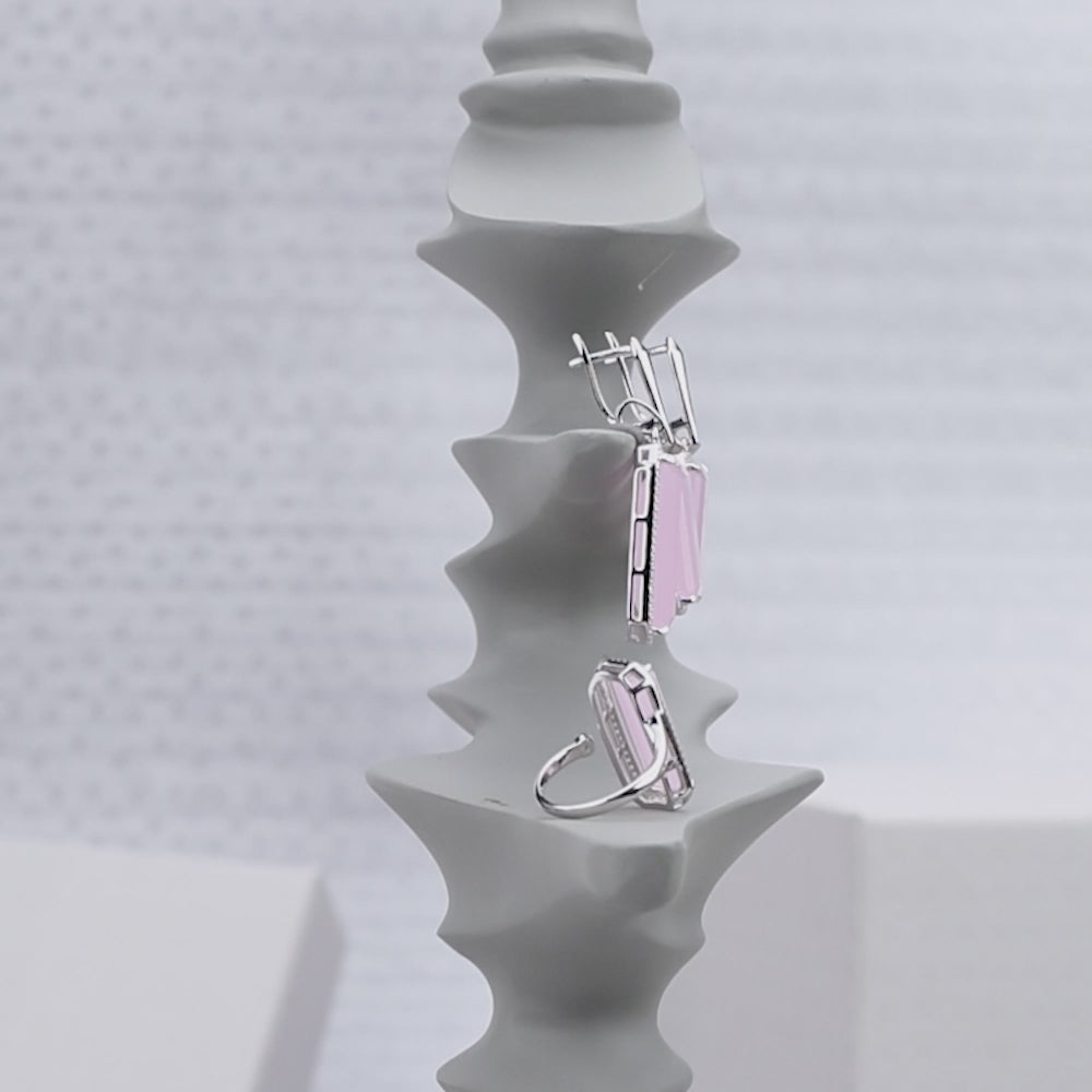 Crafted in 925 sterling silver, this ring, pendant, and earrings trio features a luminous blush-pink crystal framed by delicate shimmering accents.