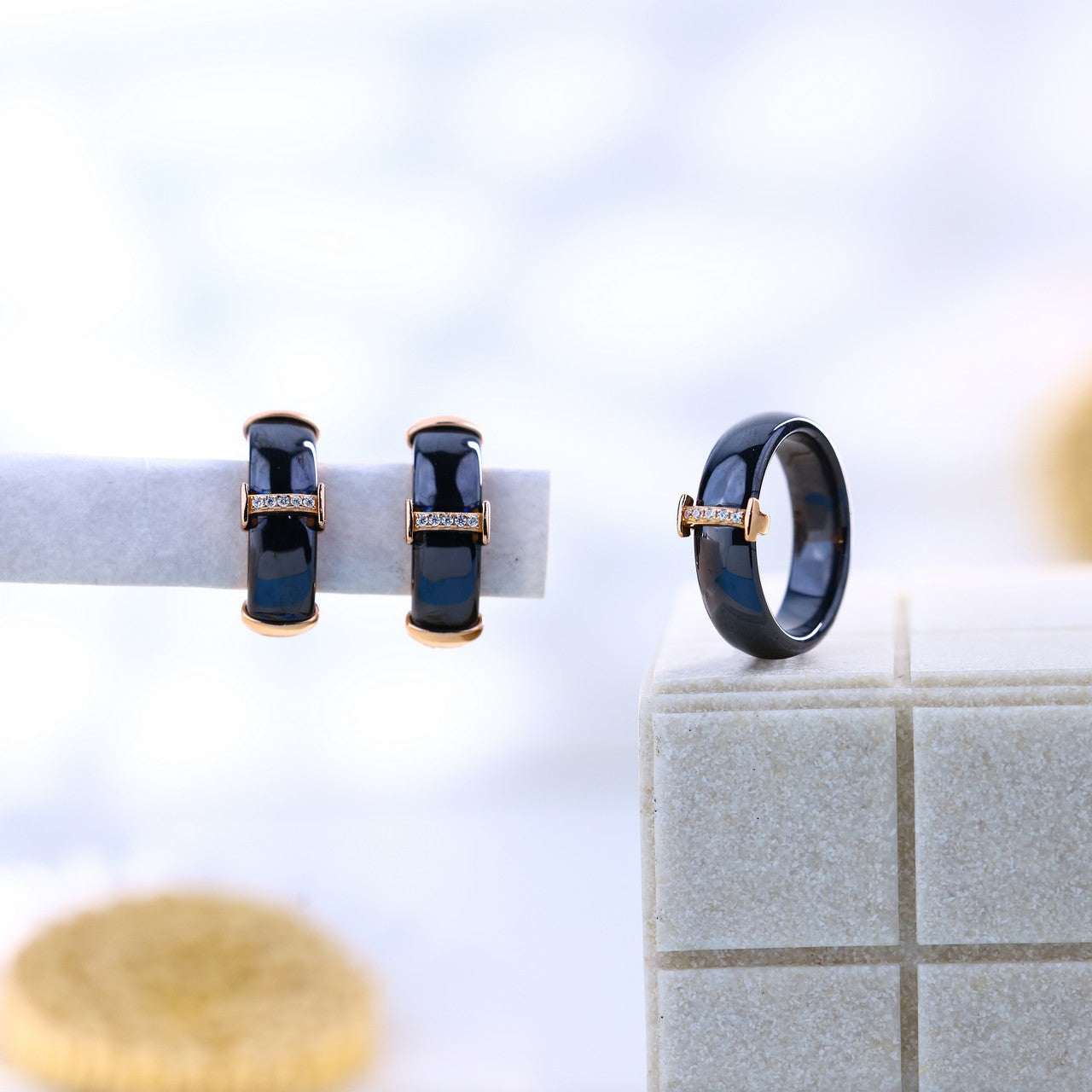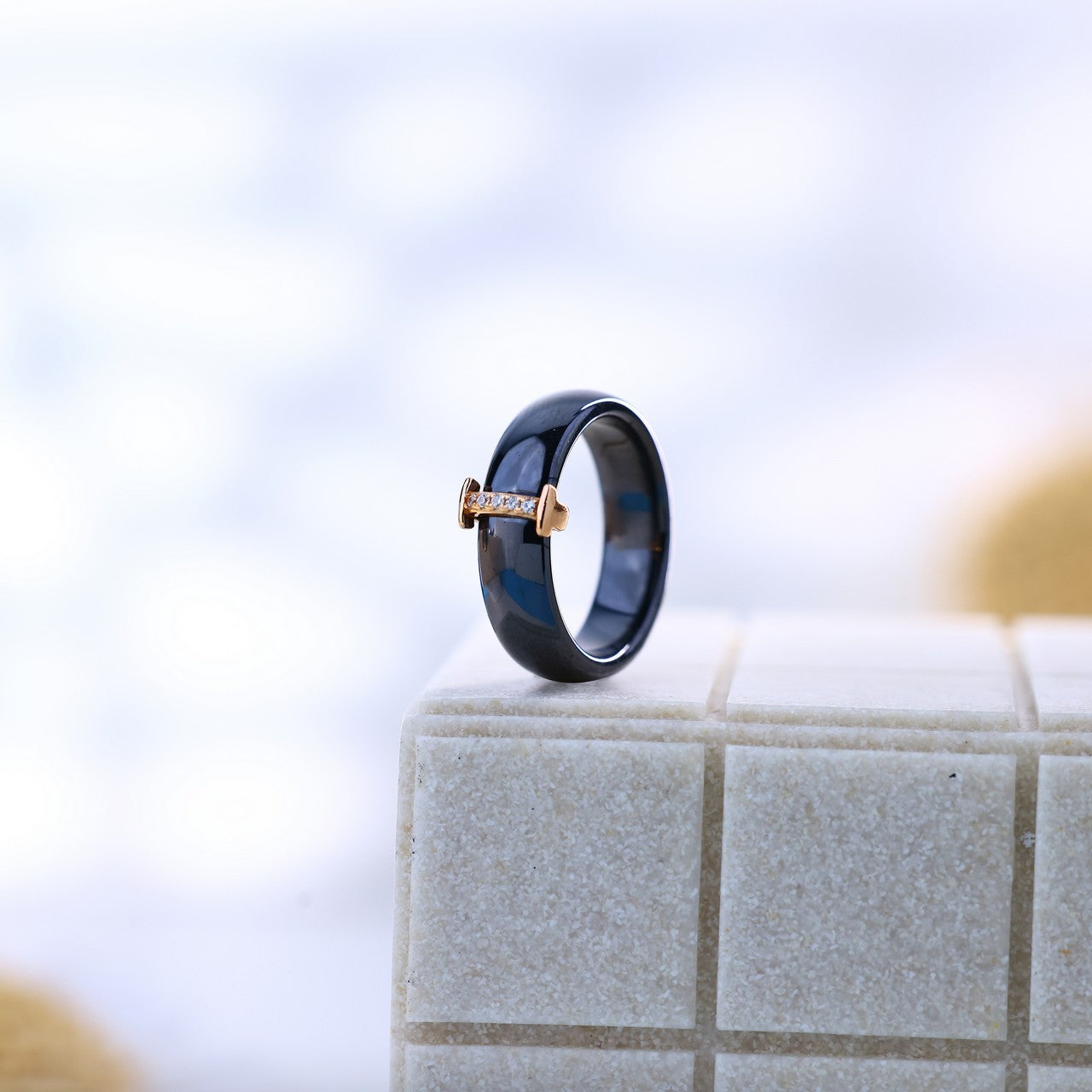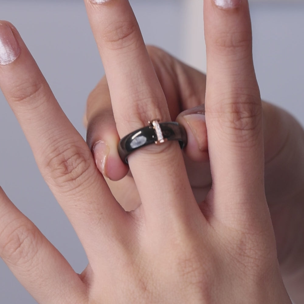 "A harmony of strength and sparkle -- this black ceramic design with a refined stone line adds subtle brilliance to your everyday elegance"