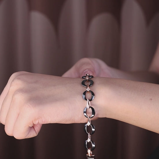 Black Ceramic & Rose Silver Bracelet