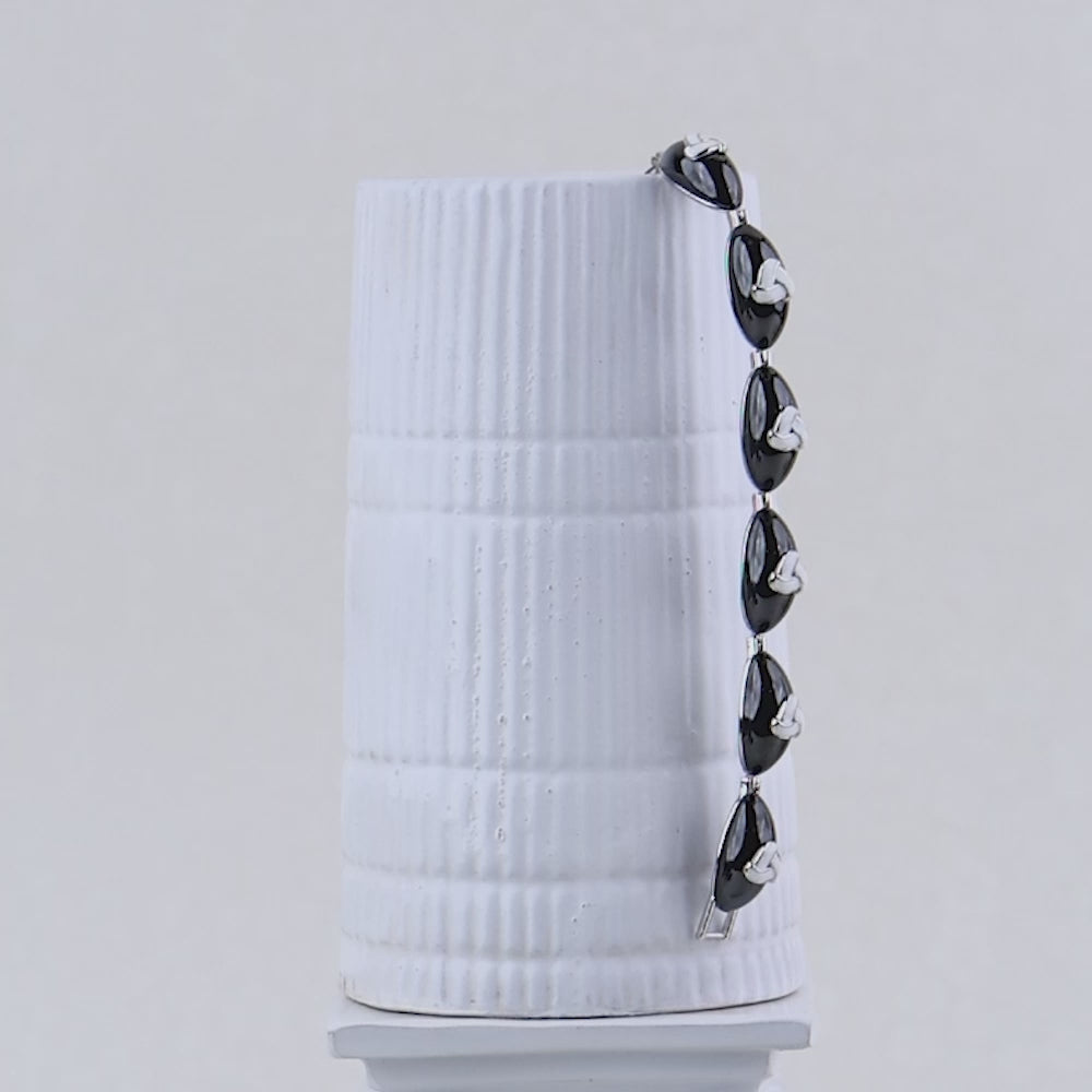 BLACK CAMEO WITH VINTAGE FINISH SILVER BRACELETS