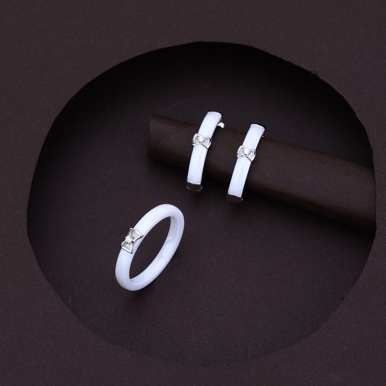 A refined fusion of silver and white ceramic designed for modern women who love timeless grace.
